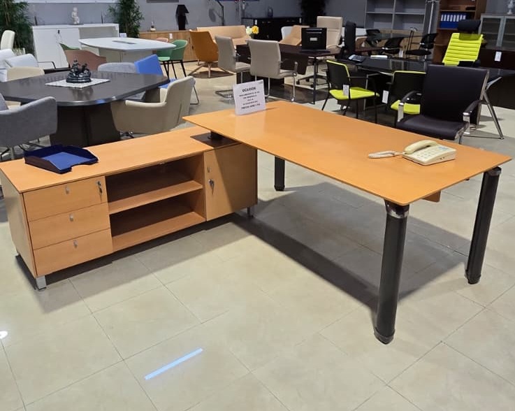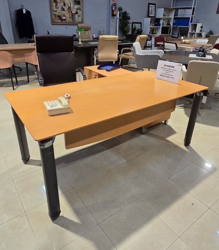 MESA DE 180X90 CON CREDENCIA APOYO DE 150X45 COLOR HAYA MIEL