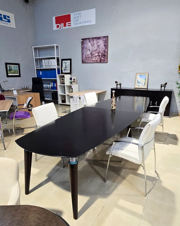 Descripción: Imponente mesa de reuniones de ocasión en buen estado. Ideal para oficinas, salas de juntas o coworking.