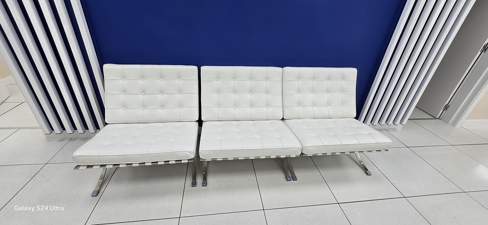 OCASIÓN Sillón con estructura de acero cromada, sistema de fijación mediante cinchas elásticas reforzadas, espumas del asiento y respaldo de alta densidad, sillón tapizado en piel de color Blanco